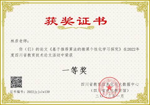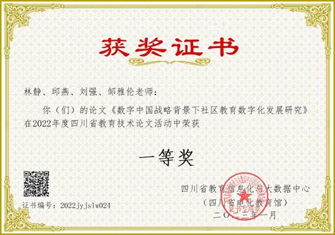 四川省教育技术论文评选是由四川省教育信息化与大数据中心举办的,旨在推进教育信息化战略,促进教育高质量发展,吸引了全省范围内的广大教师参与。此次获奖,充分体现了学校数字化科研方向有了新的突破,再上新台阶,学术和实践创新的意识显著提升,营造了浓厚的科研氛围,助力学校高质量发展,为争创全省新时代示范性开放大学提供了有力支撑。