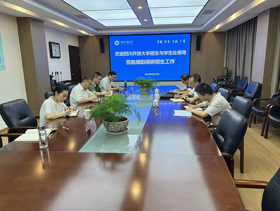 9月10日至11日,四川开放大学招生与学生处处长陶军一行来德阳开放大学调研招生工作。学校党委书记范斌凌、党委专职副书记刘志勇陪同调研。